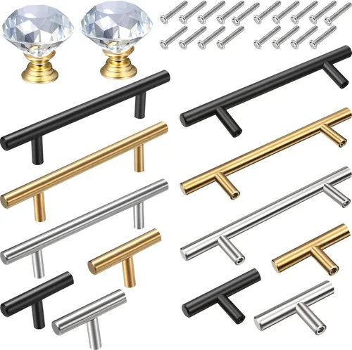 Combinación rica: el paquete contiene 3 colores diferentes de asas de bandeja, incluyendo 4 asas doradas, 4 asas plateadas y 4 asas negras. Cada color cuenta con 2 asas de tamaño normal y 2 asas de tamaño mini, así como 2 pomos de bandeja de cristal en forma de diamante. Cada mango viene con tornillos a juego para moldes de bandeja de resina; la abundante cantidad y los estilos variados pueden satisfacer tus diversas necesidades de decoración de bandeja de silicona Resistente y duradero: nuestras asas de molde de bandeja de resina están hechas de acero inoxidable de calidad, resistente y sólido, recubiertas con laca protectora para evitar la oxidación y la corrosión, no se decolora ni rompe fácilmente, la estructura hueca hace que sea ligera pero duradera para un uso duradero, puede servirte durante mucho tiempo Amplia aplicación: los mangos de hardware de acero inoxidable y los pomos de vidrio en forma de diamante son herramientas prácticas para moldes de bandejas de resina de silicona, adecuadas para hacer bandejas de ágata geoda, bandejas de frutas, bandejas de pasteles, tablas de servir, etc. ; Además, también se pueden aplicar a diferentes estilos de gabinete, cajón, puerta, armario, gabinete de vino, casillero Métodos de instalación: puedes fijar el mango en la posición adecuada en la bandeja después de verter la resina, luego esperar a que la resina se cure completamente, el mango también se fijará en la resina; también puedes perforar 4 agujeros en tu bandeja terminada o las cosas que quieras instalar asas después de que se complete la bandeja de resina, luego gira los tornillos en el centro del agujero de las asas a través de los agujeros de la bandeja Regalo novedoso: puedes preparar las asas de la bandeja para hacer una bandeja de servir personalizada, y luego dársela a tus amigos, colegas, familiares, compañeros de clase y vecinos como un regalo práctico para bodas, fiestas, fiestas de té, ceremonias de graduación, reuniones familiares, etc., mostrando tu amor y cuidado