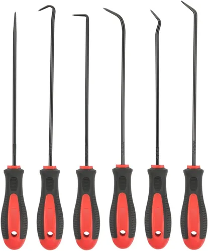 Contenido del paquete: púa recta, púa de 45 grados, púa de 75 grados, púa de 90 grados, púa de 135 grados y púa de combinación. Extra larga: la púa mide 210 mm de longitud total, la longitud de la varilla es de 100 mm Alta calidad: hecho de ejes de acero CR-V tratados térmicamente para mayor resistencia y durabilidad. Resistente al óxido y a la corrosión. Agarre ergonómico: El mango ergonómico ofrece una sujeción cómoda y antideslizante, ayuda a prevenir la fatiga de la mano en uso. Multiuso: Con el propósito de tirar de juntas tóricas, clips, cables, empaquetaduras, arandelas y otras piezas pequeñas en espacios reducidos.