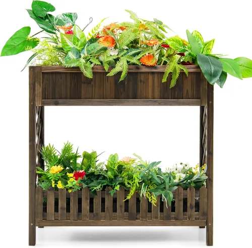 Material de madera de abeto duradero: nuestra cama de jardín elevada está fabricada con madera de abeto 100% natural, que es de alta resistencia y excelente estabilidad. Capacidad de carga de hasta 165 libras. Diseño de estante de 2 niveles: la cama de jardín elevada de madera mide 37.5 x 12.5 x 35.5 pulgadas (largo x ancho x alto) y cuenta con 2 niveles (profundidad: 8 pulgadas, 9 pulgadas) para guardar tus plantas, herramientas de jardín, macetas, fertilizantes y bolsas de tierra Altura elevada de jardinería: la altura razonable de 35.5 pulgadas de nuestras camas de jardín es ideal para aquellos que no quieren o no pueden inclinarse mientras cultivan jardinería, lo que les permite cultivar plantas fácilmente. Regalos únicos de jardinería: nuestras cajas de jardín elevadas son simples, lo que puede añadir estilo natural a la decoración de tu jardín. Nuestras camas de jardín elevadas de acero resistente son un gran regalo de jardinería Amplias aplicaciones: con colores naturales y granos de madera natural, nuestra maceta de madera elevada de 2 niveles aporta un estilo rústico a tu jardín. Puedes cultivar verduras, flores, frutas, hierbas en el patio trasero, balcón, patio, etc.
