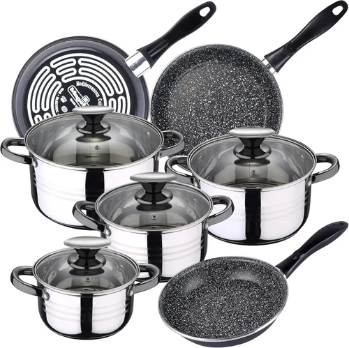 San Ignacio MAGEFESA K2 Gransasso - Juego de 8 utensilios de cocina de acero inoxidable con sartén (18/20/9.4 in)