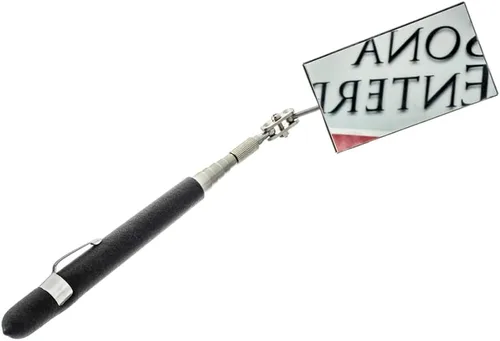 Diseño extensible y flexible: el espejo telescópico SE se extiende desde un compacto de 7-1/4 pulgadas hasta un largo de 35 pulgadas, junto con un cuello giratorio que ajusta el espejo a cualquier ángulo, perfecto para inspeccionar áreas de difícil acceso Espejo rectangular para mayor visibilidad: cuenta con un espejo rectangular de 2" x 3-1/2", que proporciona una visión más amplia para inspeccionar fácilmente piezas de automóviles, revisar debajo de vehículos o navegar por espacios reducidos Mango ergonómico de agarre acolchado: equipado con un mango de agarre de cojín negro, este espejo ofrece un agarre cómodo y seguro, asegurando estabilidad y precisión durante la se Herramienta versátil para múltiples usos: ideal para una variedad de aplicaciones, incluyendo inspección del hogar, mantenimiento automotriz, tareas de hardware y más, por lo que es una valiosa adición a cualquier kit de herramientas Práctico clip de bolsillo de metal: incluye un práctico clip de bolsillo de metal para un fácil transporte y acceso rápido, lo que hace de este espejo telescópico una herramienta práctica para profesionales y entusiastas del bricolaje por igual