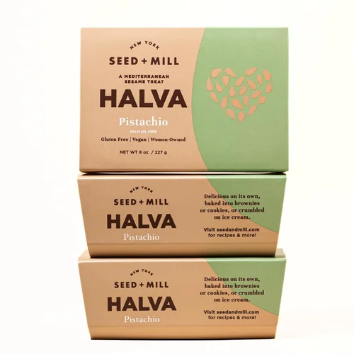 Sabor perfecto: Seed + Mill's Pistachio Halva tiene certificación kosher, vegano, sin gluten, sin huevos ni lácteos; sin colores ni sabores artificiales, sin conservantes, sin aceite de palma y hecho a mano Perfectamente delicioso con gran textura: hecho revolviendo a mano tahini (mantequilla de nueces de sésamo) con azúcar de caña a altas temperaturas y luego doblando a través de los sabores individuales; el resultado es la textura única escamosa y que se derrite en la boca de la auténtica halva (halvah, halwa, halewa) Hecho de semillas de sésamo etíope de primera calidad: para nuestra halva, que significa "dulce" en árabe, utilizamos semillas de sésamo etíope de la más alta calidad y pistachos turcos de primera calidad; lleno de sabor y excepcionalmente nutritivo; es un gran regalo; ya que no agregamos conservantes a nuestra halva, cierta separación de aceites es normal y esperada Versátil para cualquier plato: hay infinitas formas de disfrutar de la halva de Seed and Mill, comida sola directamente de la caja, desmenuzada en yogur, frutas, helados, horneados en galletas, brownies o babka, combinado con té/café, o como parte de una tabla de quesos Como aparece en NYTimes, Bon Appetit, The Today Show y Oprah Magazine - Seed + Mill es una empresa propiedad de mujeres fundada en Nueva York, con la esperanza de crear momentos alegres al probar nuestra halva artesanal y tahini de alta calidad; nuestra tienda está ubicada en el mercado Chelsea de Nueva York y se convirtió en la primera tienda en los Estados Unidos dedicada a productos de sésamo