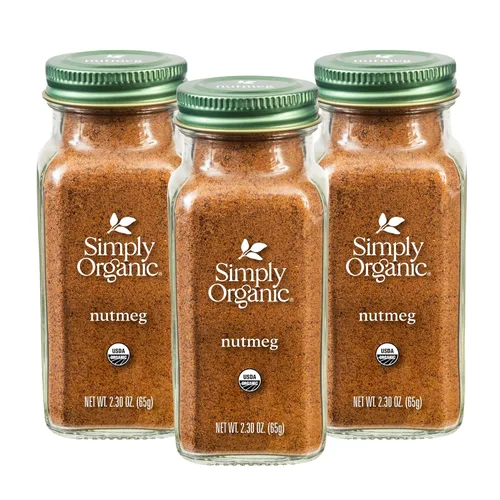 ¿Para qué sirve Simply Organic Nuez moscada pura molida, tarro de 2.3 onzas, aromático, sabor sutilmente picante, dulce, Kosher, sin OMG, sin ETO (paquete de 3)?