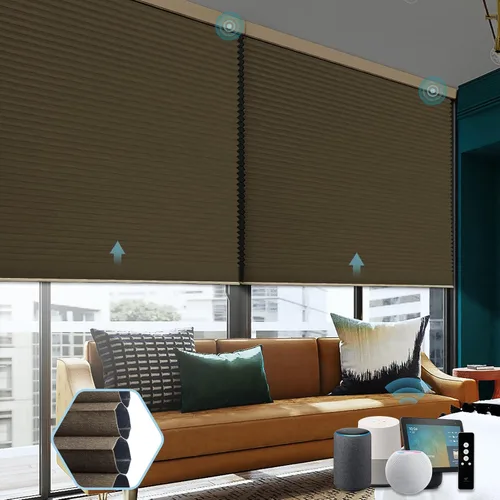 SmartWings Persianas celulares motorizadas, persianas de panal compatibles con Zigbee/Alexa/Z-Wave/Homekit, control remoto inalámbrico para hogar