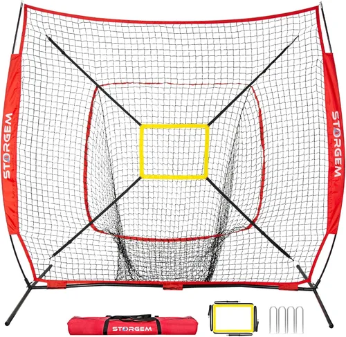 Storgem baseball and softball practice net 7×7ft portable hitting pitching batting training net baseball backstop net with batting tee and strike zone and bow frame and carry bag for batting practice, pitching, fielding, catching, and soft toss and backstop use spend less time chasing balls and more time honing skills. ideal for individual or team training. suitable for any backyard, garage or pitch, perfect for adult and child players of all abilities.