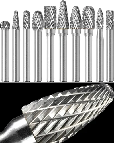 10 piezas de juego de rebabas de carburo de tungsteno de 1/4 pulgadas de vástago, diámetro de la cabeza de 6 mm, 8 mm y 10 mm, 1 caja de plástico transparente con ranuras en forma de almeja (4"x3.2"x0.6"), 1 manual y 1 caja de papel. Muy afilado, agresivo, resistente, bien equilibrado y duradero, perfecto para espacios reducidos más que los discos de rectificar o las muelas abrasivas. El corte doble produce un acabado más fino que el corte simple y reduce el tamaño de las virutas. Vástago de 1/4 de pulgada (6.35mm) compatible con amoladoras DeWALT, Ingersoll Rand, Milwaukee, Makita, herramientas rotativas eléctricas o neumáticas. Ideal para la eliminación de muchos materiales. No se ajusta a la colección de 6 mm de herramientas rotativas. Versátil: tallado, biselado, limpieza, contorneado, corte, desbarbado, alargamiento, grabado, esmerilado, trabajo en metal, fresado, MRO, pulido, aeración, escultura, conformado, afeitado, herramienta, recorte, metal, madera, piedra, acero, concreto, soldaduras y plástico, etc. Cómodo, facilidad de control, funciona con vibraciones reducidas y menos ruido. Corte muy limpio con un mínimo esfuerzo. Se incluye un manual detallado, que la mayoría de los vendedores no pueden ofrecer.
