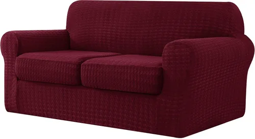 CHUN YI 3 Pieces Stretch Loveseat Sofa Cover for 2 Seater Couch, Washable Soft Sofa Slipcover with 2 Separate Seat Cushion Covers for Dogs, Spandex