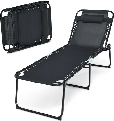 Ajustes flexibles del respaldo: diseñado con 4 posiciones diferentes de respaldo, esta tumbona satisfará tus diversas necesidades de postura sentada, como sentarte, reclinarte y acostarte completamente. Simplemente desbloqueando y bloqueando el dispositivo de ajuste, puede leer libros, tomar un baño de sol y tomar una siesta. Construcción de acero resistente: construida con marco de acero con recubrimiento en polvo, esta tumbona de patio resistente a la corrosión proporciona una capacidad de carga de 265 libras y una alta durabilidad. El sistema de soporte doble elástico conecta de forma segura la tela al marco. Además, las almohadillas antideslizantes evitan que se resbale o raye el suelo. Sensación acogedora al sentarse: con respaldo ergonómico con reposacabezas desmontable, esta tumbona apoya tu cuello y espalda, reviviendo tu fatiga y estrés. La tela del asiento y el respaldo no solo es resistente al desgaste, sino que también está bien ventilada y de secado rápido, proporcionando una experiencia acogedora y asegurando una larga vida útil. Amplia gama de aplicaciones: añade esta silla elegante, portátil y cómoda a lugares interiores y exteriores, como junto a la piscina, patio trasero y hogar. Lo que es más importante, esta silla ajustable se puede utilizar como una silla de descanso, una silla reclinable de patio o una cuna perfecta para acampar, senderismo, viajes. Fácil de instalar y diseño plegable: nuestra tumbona no necesita ser montada, simplemente despliega después de sacarla de la caja para usar. Esta silla reclinable ajustable se puede plegar fácilmente en un tamaño compacto que es fácil de almacenar en la esquina o debajo del sofá. También es fácil de transportar sobre la marcha, puedes llevarlo a cualquier lugar que vayas