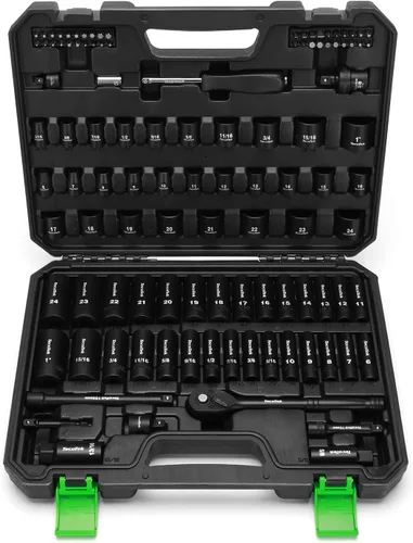 TecoTek Juego de llaves de impacto de 3/8 pulgadas, 109 piezas, SAE (5/16"-1") y métrico (6mm-24mm), profundo y poco profundo, 6 puntos,