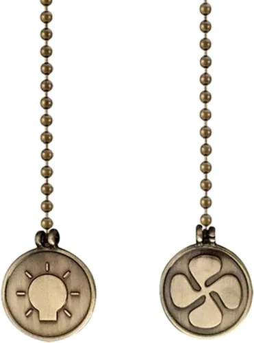 El producto incluye: El juego de cadena de tracción del ventilador de techo incluye un patrón de ventilador de latón antiguo de diseño en forma de moneda. 1 extensión de cadena de bombilla con forma de moneda de 12 pulgadas 1 extensión de cadena con forma de moneda de 12 pulgadas de longitud. Descripción del producto: Juego de cadena para ventilador de techo Este es un extensor de cadena de tracción especialmente diseñado para su luz de celda, ventilador de celda, lámpara de escritorio, etc. Especificaciones: Tamaño del colgante: Dia 32 Longitud de la cadena: 12 pulgadas Diámetro de cada cuenta: 0.118 in Material de la cadena: latón. Material del colgante: cristal. Color de la cadena: latón antiguo. GRAN PARA UNA ACTUALIZACIÓN Repara o reemplaza una vieja cadena de tracción con esta resistente pieza de conversación totalmente metálica El diseño de cable de luz y ventilador te ayuda a tirar de la cadena correcta a partir de ahora