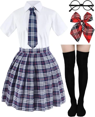 Pregunta sugerida sobre Uniforme escolar japonés de tartán plisado para cosplay, disfraz con calcetines, gafas, marco, conjunto ¿Este producto sí me sirve para lo que necesito?