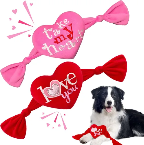 Valenine's Day - Paquete de 2 juguetes para perros con forma de corazón, regalos para el día de San Valentín para perros pequeños y medianos