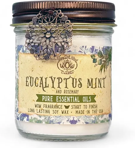 ★Menta de eucalipto★ ♥ 8 onzas. Vela de aceite esencial con fragancia intensa y más de 40 horas de combustión con una fragancia tranquila y refrescante de principio a fin. ♥ El frasco de vidrio reutilizable y ecológico está adornado con un encanto único y una tapa tradicional de estilo antiguo. Estas son las velas naturales con mejor olor, velas de eucalipto para un aroma de spa más menta y romero. Agregue un ambiente fragante a cualquier decoración, especialmente estilo granja, estilo campestre francés, suroeste, bohemio, cabaña y shabby chic. Fabricadas en Estados Unidos en lotes pequeños utilizando aceites perfumados premium de alta calidad, con cera de soja natural y núcleo de algodón, mechas sin plomo para un rendimiento superior y duradero de la vela perfumada de principio a fin, aproximadamente 40+ horas. Estas son excelentes velas para todo el año, velas de otoño y velas de Navidad. También hacen regalos fantásticos o un complemento para cesta de regalos para todas tus personas favoritas como la abuela, mamá, Mimi, Nana y no olvides a tu hermana o madrastra ♥♥ Les agradecemos desde el fondo de nuestros corazones por apoyar a nuestra pequeña empresa familiar, propiedad de mujeres. ¡Que tu vela arda brillante! ♥♥ Velas perfumadas para el hogar: Disfruta de la maravillosa fragancia de estas encantadoras velas de frasco. Hecho de aceites de alta calidad y cera de soja natural, cada vela de 8 onzas (226 gramos) arderá 40+ horas. Crearán un ambiente maravilloso en cualquier habitación. Le agradecemos desde el fondo de nuestros corazones por apoyar nuestra pequeña empresa familiar y propiedad de mujeres. ¡Deja que tu vela arda brillante!