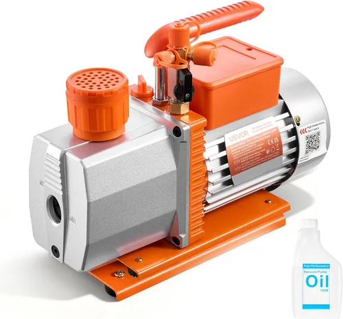 Aspiración de alta eficiencia: esta bomba de vacío de paletas rotativas de dos etapas cuenta con un robusto motor de 3/4 HP, que ofrece un caudal de 7 CFM y un vacío final de 0.3 Pa. Ideal para el mantenimiento de HVAC, garantiza una limpieza profunda y resultados confiables en todo momento Funcionamiento estable y confiable: equipado con un motor de 4 polos de alto par, esta bomba de vacío HVAC funciona de manera eficiente durante períodos prolongados. Su carcasa de hierro fundido y aluminio fundido a presión con un ventilador de refrigeración integrado evita el sobrecalentamiento, manteniendo un rendimiento estable Excelente compatibilidad: equipada con puertos de entrada de aire SAE de 1/4 pulgadas, ACME de 1/2 pulgada y SAE de 3/8 pulgadas, esta bomba de vacío se conecta fácilmente a sistemas de aire acondicionado automotriz y pequeños sistemas de refrigerante R134a, R22, R410a, R1234YF y R32 Diseño fácil de usar: con un 0.26 cuartos de galón. (8.5 fl oz) de capacidad de aceite y una ventana de aceite transparente, comprobar los niveles de aceite es simple. Esta bomba de vacío de aire acondicionado incluso incluye una botella de 0.26 cuartos de galón. (8.5 fl oz) de aceite al vacío, por lo que se puede utilizar desde el sacarlo de la caja Aplicaciones versátiles: Esta bomba de vacío de CA automotriz está diseñada para el servicio de refrigeración, reparación de HVAC, desgasificación de resina y estabilización de madera. Es adecuado tanto para uso profesional como doméstico y maneja múltiples industrias y proyectos creativos