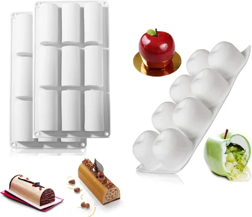 VIKROM Paquete de 2 moldes de silicona para hornear con 9 cavidades para cocinar pasteles, rollo, chocolate y pastel de manzana 3D, molde redondo de