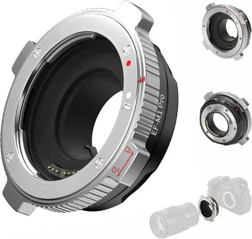 Amplia compatibilidad: el adaptador de montaje VILTROX EF-M1 Pro es compatible con lentes de la serie EF/EF-S para ser utilizadas cámaras de la serie Micro 4/3: GH5 GH4 GH6 GH5S GF5 GF1 GX9 G9 GX7 GF7 GM5; Olympus OM-D E-M1 II, E-M5 III, E-M1 III, E-M1 0 III; BMPCC4K, Z CAM E2; Por favor, póngase en contacto con nosotros si no está seguro de si este anillo adaptador de lente se ajusta a su cámara. 【Enfoque automático y control de apertura】Construido con tecnología de enfoque automático STM de alto rendimiento presionando el obturador ligeramente, y soporta el enfoque ocular al mismo tiempo, el adaptador EF-M1 Pro te dará una velocidad rápida y una experiencia de enfoque suave. También puede ajustar la apertura del objetivo EF/EF-S controlando el cuerpo de la cámara de la serie M43. Transmisión de señal EXIF: el diseño de contactos chapados en oro mejora en gran medida su conductividad mejora la información EXIF, puede grabar la información de disparo y los datos de la foto, y es compatible con el cuerpo de la cámara y el software de imagen para ver el obturador de apertura, ISO y otra información. Función antivibración: contactos electrónicos de metal integrados y chips de datos, admite la función antivibración de la lente y resuelve eficazmente los problemas de imagen fantasma y difuminación causados por disparos deportivos o sacudidas durante la sujeción. Diseño de bloqueo giratorio: adopta un diseño de hebilla de bloqueo giratoria, el adaptador VILTROX EF-M1 Pro puede bloquear fácilmente tu lente, evitando que se resbale o se agite durante el disparo. Es ligero de solo 6.2 onzas, fácil de transportar y añade cero volumen a tu cámara. Actualización de firmware USB: el anillo adaptador tiene una interfaz tipo C integrada, admite actualizaciones posteriores de firmware, optimiza la configuración y mantiene el dispositivo en un estado ideal. Mediante actualizaciones continuas de software, puede ser compatible con más modelos nuevos y lentes nuevos para resolver problemas de compatibilidad.