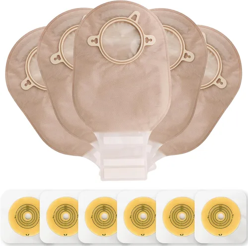 Sistema de dos piezas: sistema de dos piezas, el anillo de hebilla es fácil de fijar la bolsa con la barrera cutánea. Puede cambiar fácilmente la bolsa de colostomía que está utilizando sin quitar la barrera cutánea. Respetuoso con la piel: la barrera cutánea está hecha de material hidrocoloide médico de alta calidad, agradable al tacto, pasta firme, sin fugas laterales, sin eliminación de residuos. Filtro de carbón activado: las bolsas de ostomía vienen con un filtro de carbono, puede filtrar eficazmente el olor a gas en la bolsa durante el escape y evitar olores peculiares. Corte para ajustar: el rango de orificios de corte de las barreras cutáneas es de 0.79 pulgadas (0.787 in) a 2.24 pulgadas (2.244 in). Puedes utilizar la tabla de medición de la abertura del estoma en el paquete para medir tu estoma. El paquete incluye: 15 bolsas de ileostomía de dos piezas, 6 barreras, 1 tarjeta de medición de ostomía, 1 libro de instrucciones (idioma español no garantizado)