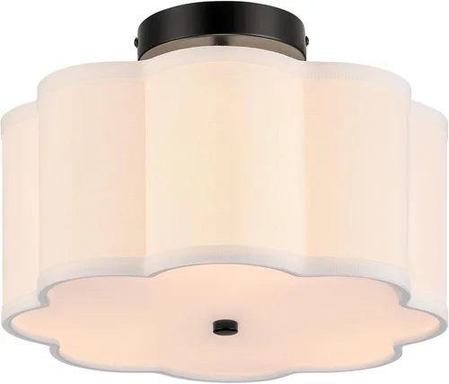 Lámpara de techo moderna: con un elegante marco de metal negro y una pantalla en forma de pétalo blanco, Vonluce de 12.6 pulgadas. La lámpara de techo semiempotrada de 3 luces añade un toque elegante, complementando perfectamente todo, desde interiores contemporáneos hasta modernos de mediados de siglo Ideal para zonas acogedoras: Recomendado para su uso con bombillas LED A19, esta lámpara de techo proporciona hasta 2400 lúmenes, perfecta para 30 a 60 pies cuadrados. pies como tu entrada, pequeño comedor, sala de estar o dormitorio de invitados Compatible con bombillas E26: esta lámpara de techo cuenta con 3 enchufes E26, compatibles con bombillas LED, incandescentes y CFL, cada una soporta hasta 60W. Las bombillas no están incluidas, por lo que puedes elegir la opción perfecta para que coincida con tu estado de ánimo Seguridad certificada ETL: con certificación ETL, esta lámpara se adhiere a altos estándares de seguridad. Hecho de metal y tela de alta calidad, proporciona una iluminación confiable para mantener tu espacio bien iluminado durante años Instalación en minutos: la instalación de esta lámpara de techo es rápida y fácil gracias al kit de montaje incluido y las instrucciones claras (idioma español no garantizado). Una vez que su cableado esté preparado, tendrá este accesorio en funcionamiento en poco tiempo