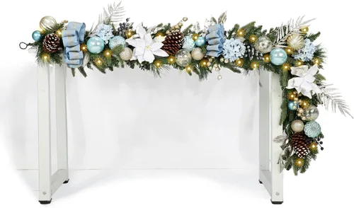 Decoración versátil: nuestra guirnalda de Navidad cuenta con una cautivadora variedad de decoraciones, incluidas flores de hortensia realistas, bayas doradas brillantes, delicado lazo de encaje y adornos irrompibles para crear una impresionante exhibición visual. Inspirada en la naturaleza: en el corazón de esta guirnalda se encuentra la hortensia realista, que añade un toque de belleza natural con sus pétalos suaves y delicados. Las bayas doradas y las hojas de palma con purpurina brindan un toque de brillo y elegancia, captan la luz y emiten un cálido brillo por todo tu espacio. La inclusión del lazo de encaje añade un toque delicado y femenino que evoca una sensación de romance atemporal. Estilo rústico y elegante: para añadir una dosis adicional de brillo festivo, hemos incorporado bolas y tallos transparentes y con purpurina. Estos elementos con purpurina brillan como estrellas contra el telón de fondo de suave tono azul que atraviesa la guirnalda. El azul suave no solo te hace sentir tranquilo y calmado, sino que también añade un toque contemporáneo a la paleta de colores tradicionales de Navidad. Luces led de color blanco cálido: con 50 luces led preinstaladas de color blanco cálido que iluminan tu hogar cálidamente y añaden un aspecto brillante. Funciona con baterías (no incluidas) y tiene 3 modos. Crea un ambiente navideño: esta guirnalda con follaje de Navidad se puede colocar en muchos lugares, como repisa de la chimenea, mesa del comedor, barandillas de escaleras, barandillas, paredes, puertas, ventanas, arcos, etc., para añadir un ambiente festivo a tu hogar.
