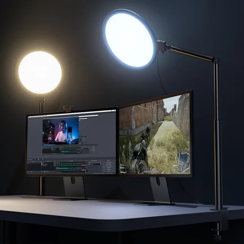 Lámparas de escritorio suaves y uniformes para oficina - La luz de escritorio de pantalla completa Weilisi proporciona suficiente luz uniforme y difusa, restaura la luz natural y sin sombra para mejorar las características de tu sujeto, creando un espacio de trabajo ideal para videoconferencias y tareas detalladas Diseño de altura flexible mejorado - También como lámpara de escritorio para oficina en casa, está diseñado con un soporte telescópico, una longitud de poste extensible es de 11.42 pulgadas, esta iluminación de escritorio hace que tu espacio de trabajo o configuración de webcam tengan una cobertura óptima Luz clave giratoria de 360° - Luz de anillo para escritorio que puede girar 360°, rotando en cualquier ángulo para la dirección de la luz, lámpara de escritorio con abrazadera adecuada para su trabajo en diferentes posiciones en el escritorio según sus necesidades, como luz de escritorio, luz de laptop, luz de cámara web, luz de computadora, etc Cabeza de luz ajustable de 180° - Luz de anillo para laptop con cabezal de iluminación que puede ajustar el ángulo 180°, fácil de usar desde arriba para grabación de video, transmisión en vivo, lectura, cocina, etc. Deje que su aplicación afecte mejor Estable y que ahorra espacio - ACTUALIZACIÓN Anillo de luz grande de metal con abrazadera en C con soporte, se puede ajustar a un ancho máximo de abrazadera de 2.34 pulgadas, tiene base de silicona antideslizante para evitar arañazos en el escritorio, y hacer que tu escritorio se vea más limpio y ordenado Construye tu iluminación - Luz de anillo de trípode con tecnología LED Edge-lit, lámpara para escritorio con ADAPTADOR DE ALIMENTACIÓN de 5V/3A y cuenta con 10 niveles de brillo y 3 temperaturas de color. Adapta a tus necesidades para que la calidad de tus fotos y videos mejore enormemente Aplicación múltiple - Luz anular de escritorio fácil de instalar, lámparas de escritorio de uso conveniente para oficina en casa, luz para reuniones de zoom, grabación de video, iluminación de videoconferencia, videollamadas, transmisión en vivo, juegos, lectura y fotografía, adecuada para lámpara de escritorio de oficina para el trabajo Contenido del paquete: 1 luz de anillo para escritorio con abrazadera en C de metal, 1 adaptador