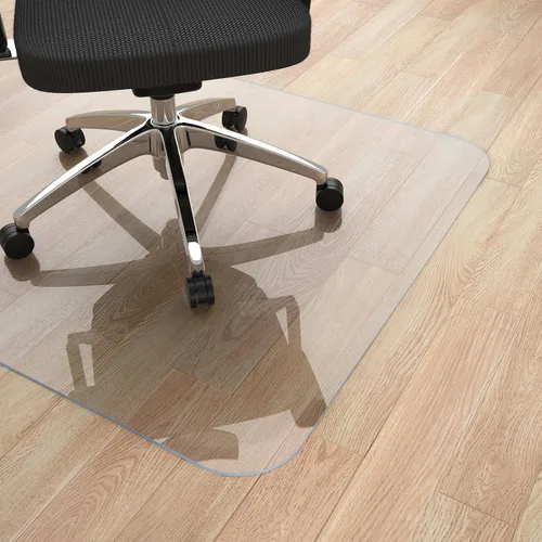 Uso solo en suelos duros como madera, azulejos o vinilo. Protege los suelos de arañazos, rozaduras, suciedad y derrames. Reduce el desgaste y evita costosas reparaciones en suelos de madera dura o laminados Hecha de PVC resistente, esta alfombrilla resiste arañazos, rasguños y decoloración. No se riza, dobla ni se agrieta con un uso normal. Diseñado para el uso diario con cualquier silla giratoria Muévete sin esfuerzo en suelos duros. La superficie lisa permite rodar y deslizar fácilmente sin deslizarse. La alfombrilla se mantiene en su lugar, reduciendo la tensión de piernas y espalda Fácil de usar: el elegante diseño transparente se combina con tu suelo. Fácil de limpiar y mantener durante todo el año. Funciona bien como tapete de escritorio o silla de computadora Fácil de usar: sigue las instrucciones proporcionadas para que la alfombrilla de silla de piso duro se coloque fácilmente y deja que el tapete para silla de oficina haga que tu trabajo sea más fácil Fácil de usar: