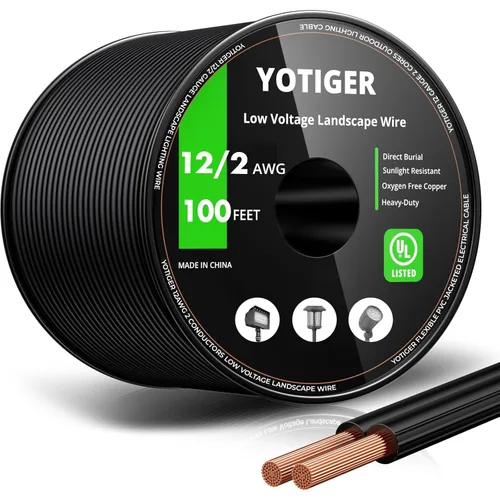 YOTIGER Cable de Paisaje de Bajo Voltaje Calibre 12 de 100 Pies, Cable de Iluminación de Paisaje de Bajo Voltaje 12/2, Cable de Cobre de 2