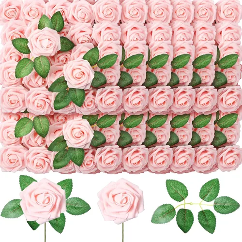Características: Diseño realista: las rosas artificiales están hechas de espuma de polietileno de calidad, dándoles el aspecto y la sensación de rosas frescas. Flexible y fácil de usar: cada rosa viene con tallo flexible que se puede doblar o cortar fácilmente para adaptarse a tus arreglos florales, ramos, centros de mesa y mucho más. Uso versátil: con tallos de alambre flexibles, estas rosas son ideales para crear ramos, centros de mesa, boutonnieres y más para bodas, duchas y decoración del hogar. Especificaciones: Material: espuma de PE Color: rosa champán, verde. Tamaño: cada cabeza de rosa mide aproximadamente 3.15 pulgadas, con un tallo de 6.7 pulgadas. El paquete incluye: 200 x cabeza de rosa sintética. 100 tallos de rosa. Notas: Medición manual, puede haber ligeras diferencias en el tamaño. El color puede variar ligeramente debido a las diferentes pantallas.